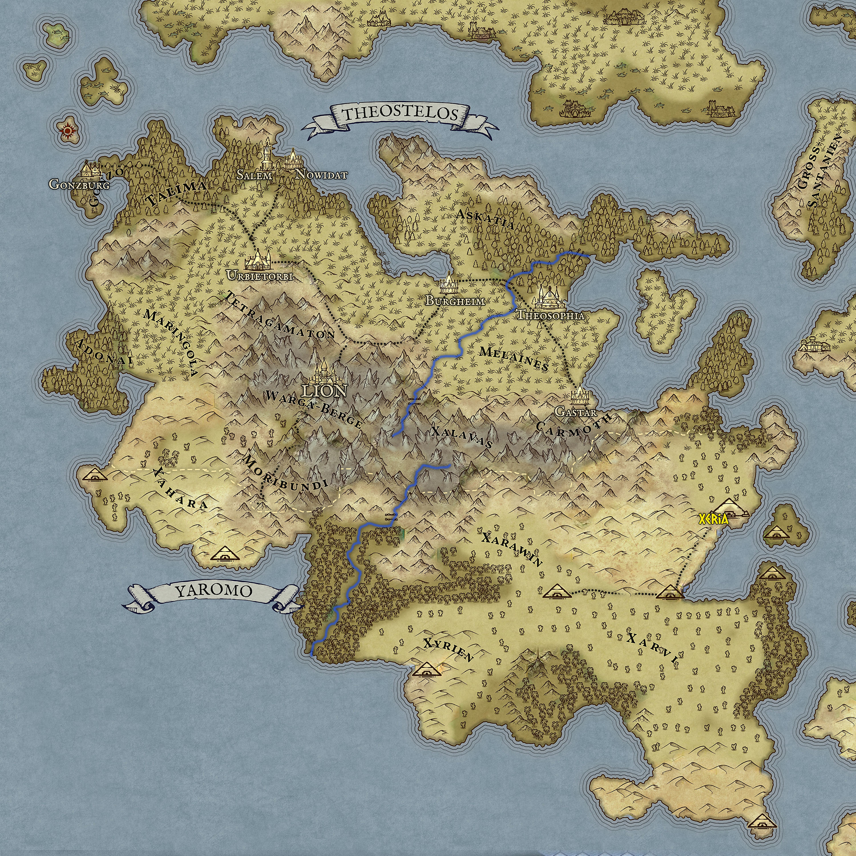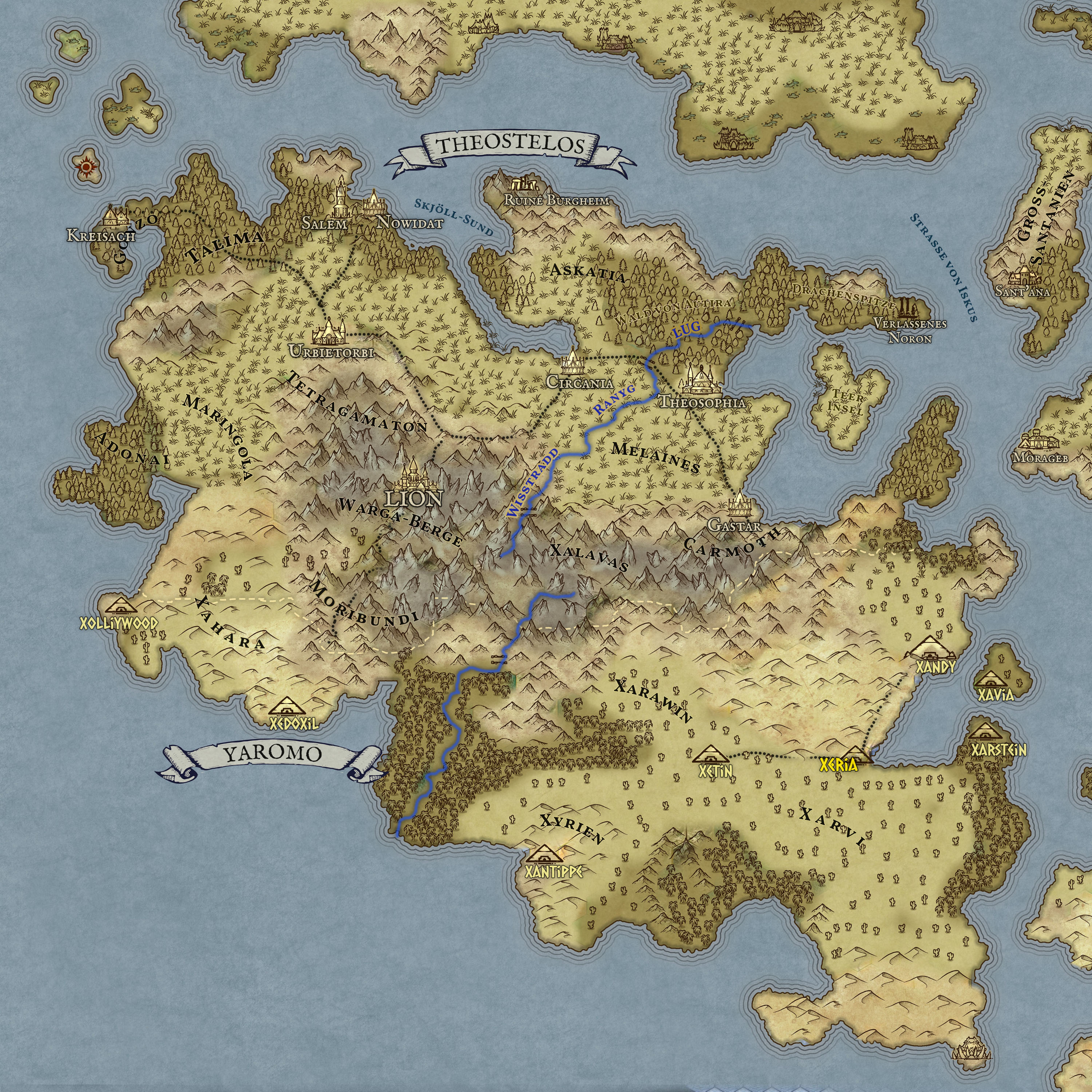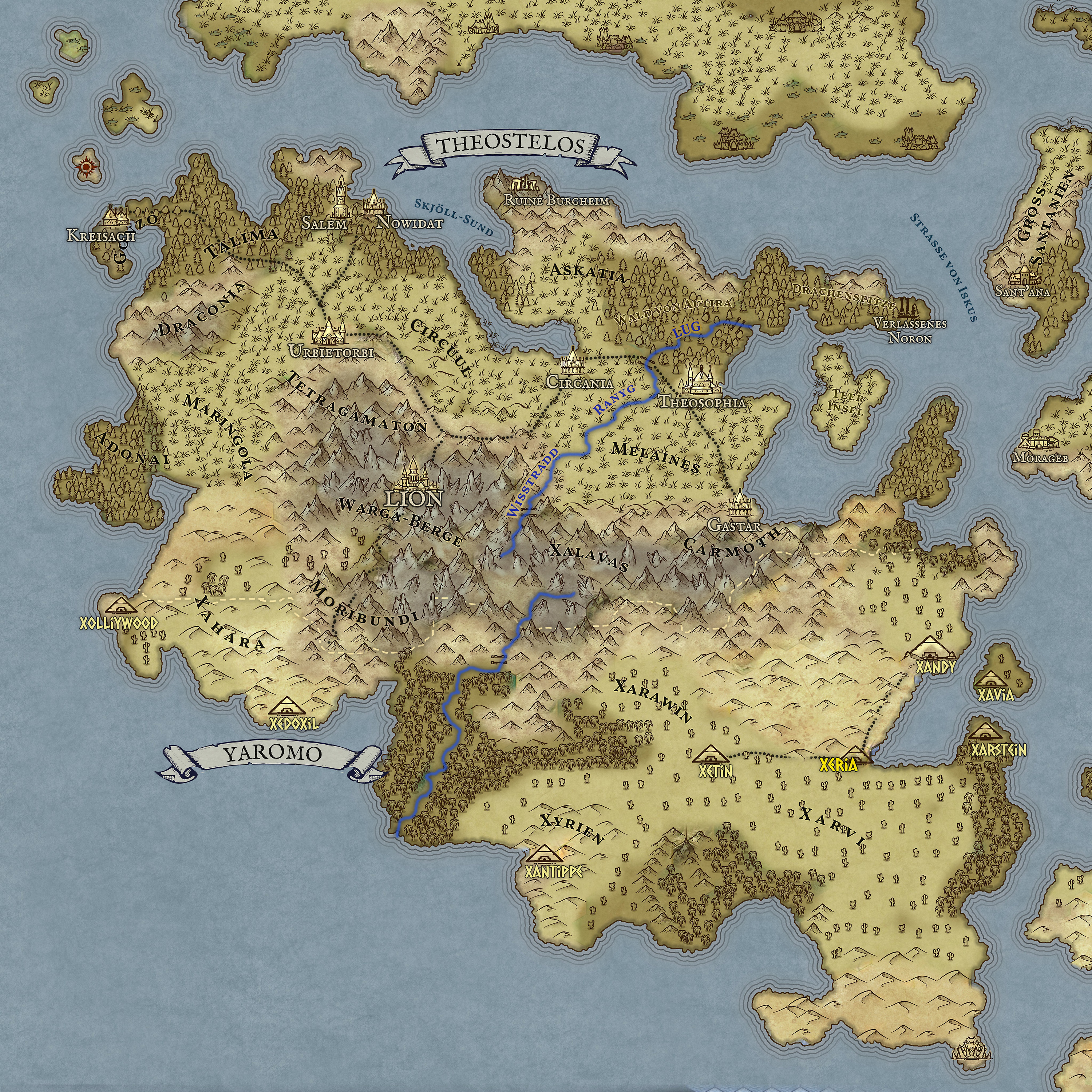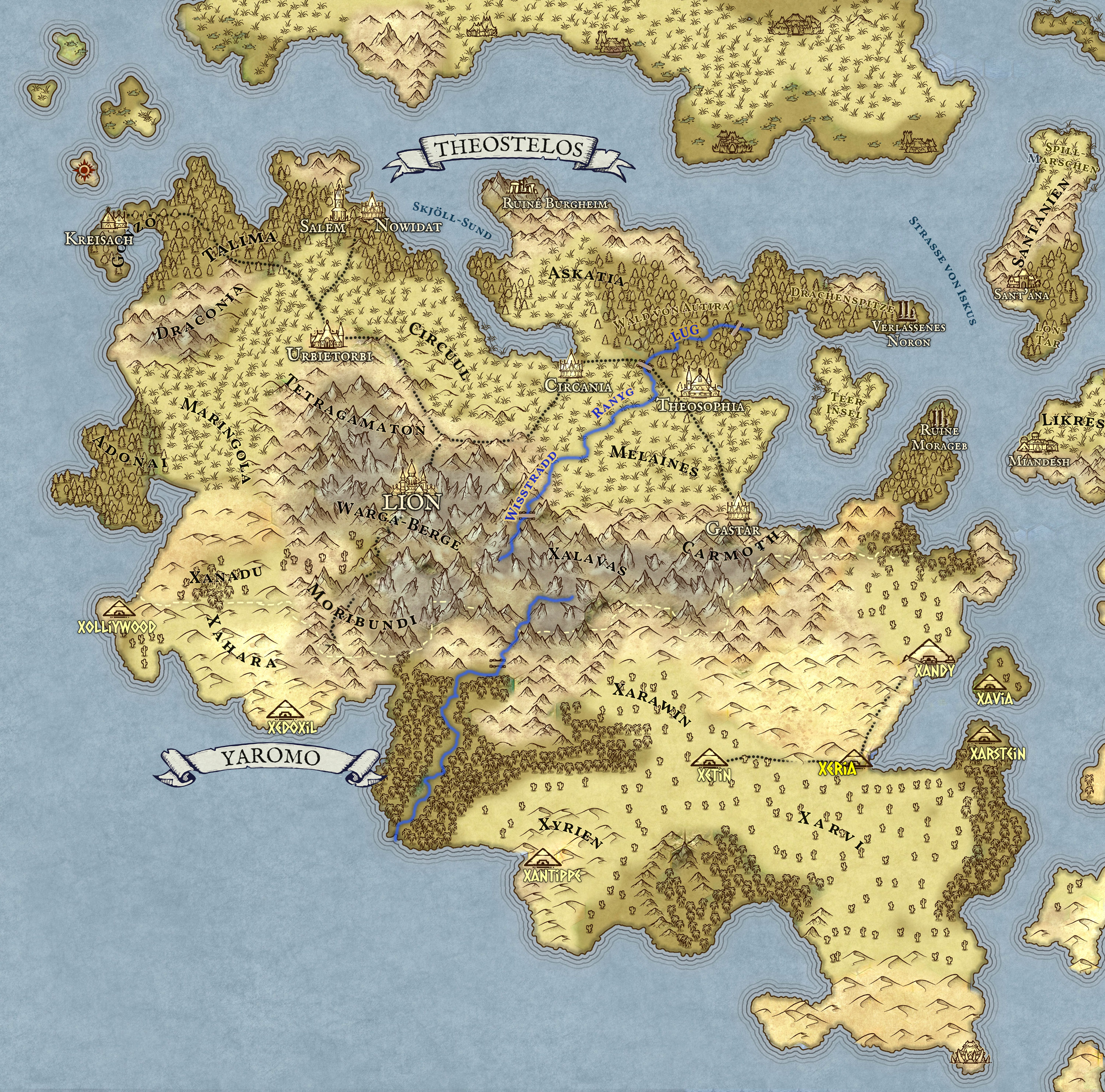 Karte des Reiches Theostelos und Yaromo