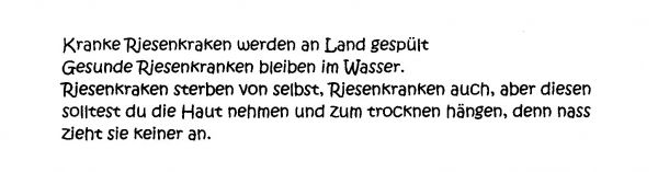 Riesenkraken sterben von selbst, Riesenkranken auch, aber diesen solltst du die Haut nehmen und zum trocknen hängen, denn nass zieht sie keiner an."