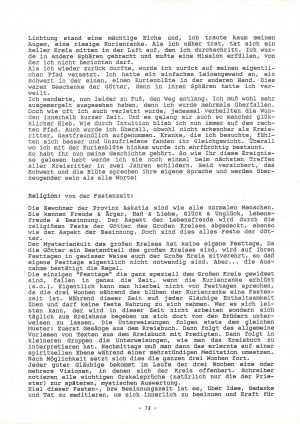 Jeder guter Gläubige bekommt im Laufe der drei Wochen eine oder mehrere Visionen, in denen sich der Kreis offenbart. Schreiber notieren alle wichtigen Orakelsprüche (natürlich nur die der Priester) zur späteren, mystischen Auswertung. Ziel dieser Fasten- bzw Besinnungszeit ist es, über Idee, Gedanke und Tat zu meditieren, um sich innerlich zu besinnen und Kraft für das folgende Jahr zu sammeln. Natürlich offenbart sich hierbei auch der Große Kreis und meist mehrere Götter gleichzeitig.